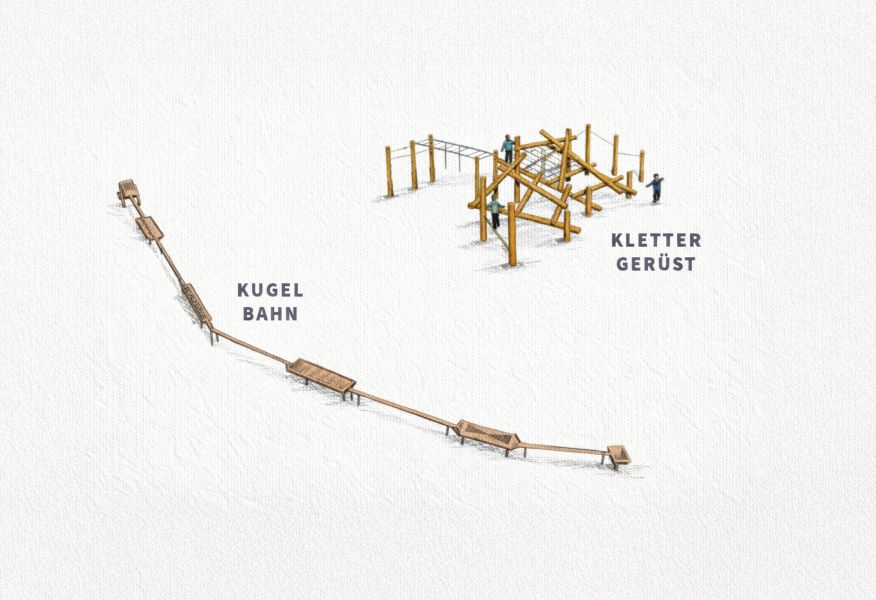 Kugelbahn und Klettergerüst